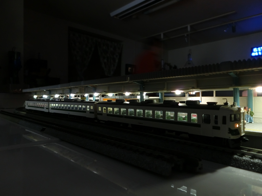 RMM誌や昨年のJAMでご覧になった方もいるかもしれませんが、武蔵野線のモジュールを作成された方です。 なお、ご本人画像は割愛(というか撮ってませんw) 私を含めて鉄道好きが集まりましたので、終始話に花が咲き乱れ、林社長はボシさんの、ボシさんは林社長の作品を見ては大盛り上がり。 やはり作品というのは実際の目で見ないと分かりませんよね。 見落としやすい細かい部分とか、言われないと気が付かない部分とか。 お二人の作品はそのような細かい部分をさりげなく見せていると思います。 そういう共通点がこのような雰囲気を作ったのかもしれません。 そんな中、私とボシさんが長時間喰らいついていたのが、駅ホームの照明サンプル品。 何年もショールームには足を運んでいて、カタログでは何度も見ているのですが、じっくり見たのはこれが初めて(汗 とにかく綺麗で優しい光なんですよ。 当然ホームだけでは満足しない、いい大人2名。車両を並べて撮影会のスタートです(笑) E655系は林さん所有品、455系(TOMIX)は当方所有品です。 ピントがサイドに合ってしまったのが悔しいのですが、ブライトチップスのLEDはテールの赤がすごく綺麗ですっ!!(画像はBC製に交換済み) あ、幌の黒塗装が剥げてますね。 まだミッチャクロン使ってなかった頃に仕上げて入場させてました。 | カレンダー