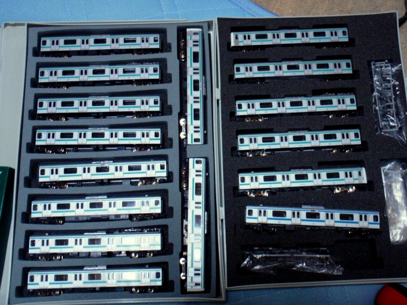 先日、リニューアル再販されましたが、当方は初期ロットを持ってます。 ただし、サハE501(サハE500)がなかなか入手できず、それでも3両はなんとか揃えられたものの、ラスト1両がどうしても入手困難な状態が1年近く。 この間はサハ209(京浜東北)でカバーしてました。 同じ寒冷色系なので混在しても違和感はありませんでした(笑) リニューアル再販の影響かセットバラシがヤフオクでも出始めて、先日なんとかラストの1両を落札し、本日無事に到着しました。 これでE501系15両フルで揃いました♪ 内装は既に209系を入れた時に実施しているので、座席パーツのみ交換、台車、床下、室内灯はそのまま利用。 残す作業はインレタと方向幕です。