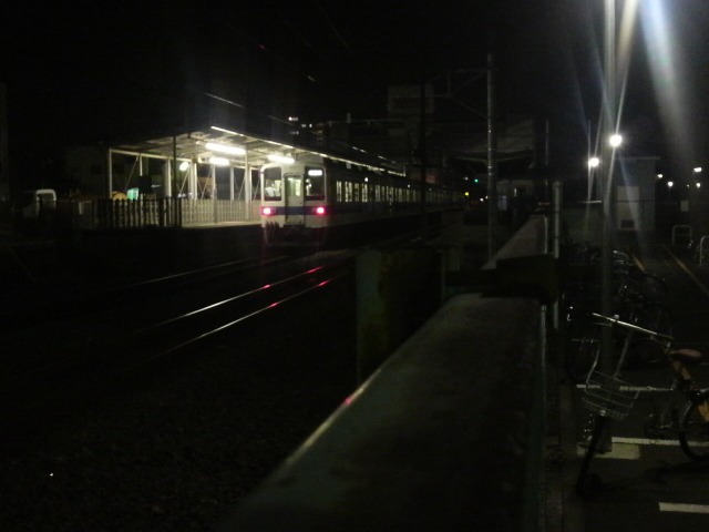 帰りは最終に間に合うかどうかギリギリでした。 しかし、途中北千住駅で客同士のイザコザが始まって3分遅れが発生。 かなーりヤバス。 しかも隣に座ったヤロウが寄りかかる寄りかかる。 松戸の手前で反対側が空いたのですが、 変わりに座ったヤロウがPSPをいじくって、ボタン音がうるさい。 これ以上イライラするのを避けるため、松戸で快速線に乗り換えるため下車。 松戸0時02分発。 これなら柏に0時13分着。 0時22分発の最終野田市行きには十分間に合います。 ここまでは計算通りだったのですが、日時は金曜の深夜。 考えが甘かった・・・快速線5分遅れ。 柏駅着0時16分。 一応0時15分発の最終七光台行きが待っていてくれたので それに乗ることができましたが、ちょっと焦りました。 追記) 柏に到着したときは、最初に乗っていた緩行線はすでに柏を出発した後でした。 野田線の最終上り2406レです。 肝心の野田市幕が光りでつぶれました。