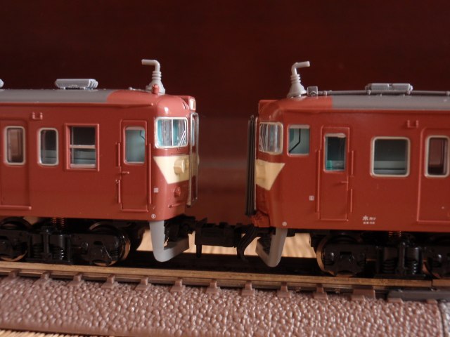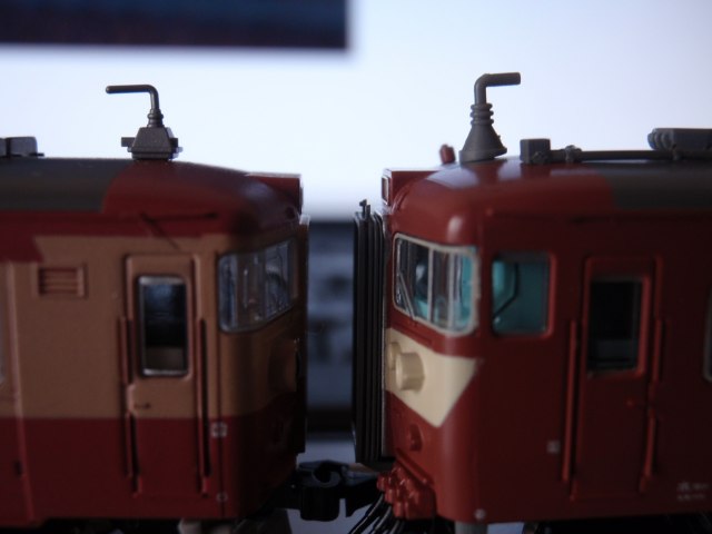 MicroAceの415系を本日購入してきました。 何かが違う・・・。 全体的に色が濃いから? 正面貫通部分? 無線アンテナが妙にでかく、曲がって取り付けられています(^^; あまり参考にはなりませんが 比較としてKatoの457系(初期ロット)と。 これはTomixの分売パーツに変える予定。 中間先頭車同士を連結しようもんなら 間隔が広すぎるぅ!!! これもTomixのTNカプラーで なんとかするしかないです。 なお余談ですが、 パッケージの写真は数年前K510編成に催されたリバイバル塗装時のもの。 よーくみると、連結面に転落防止幌が付いてます(笑) ちなみに撮影地は松戸~金町ですね。